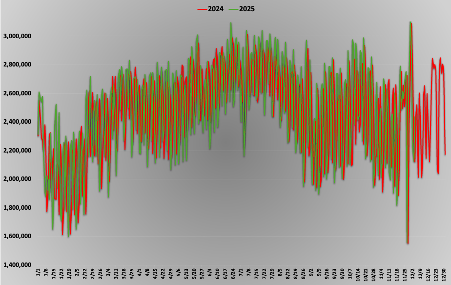 🇺🇸 Daily Passenger Counts at U.S. Airports, 2025 vs. 2024