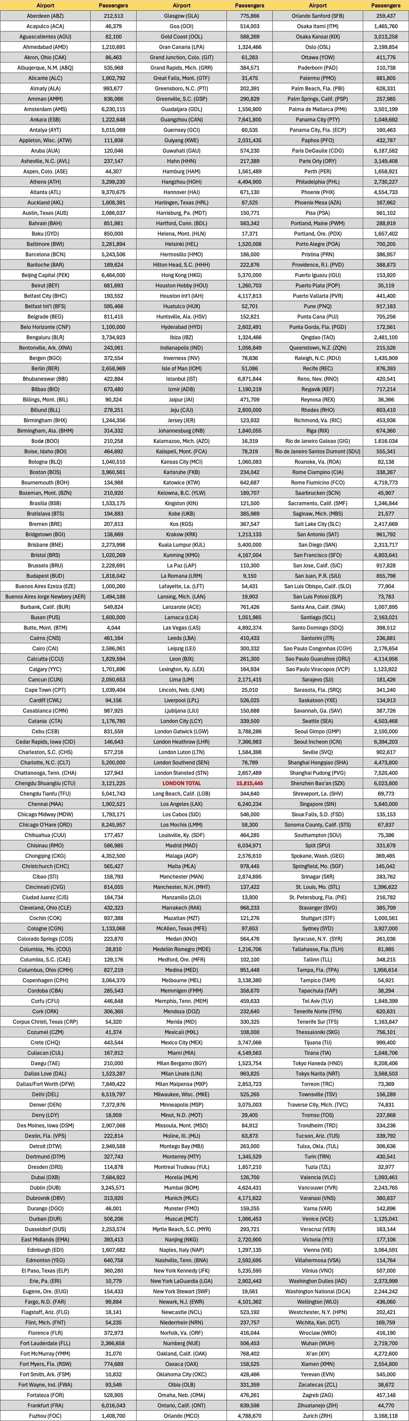 - FLIGHTLINE EXCLUSIVE: Final October 2025 passenger traffic totals for hundreds of airports worldwide.