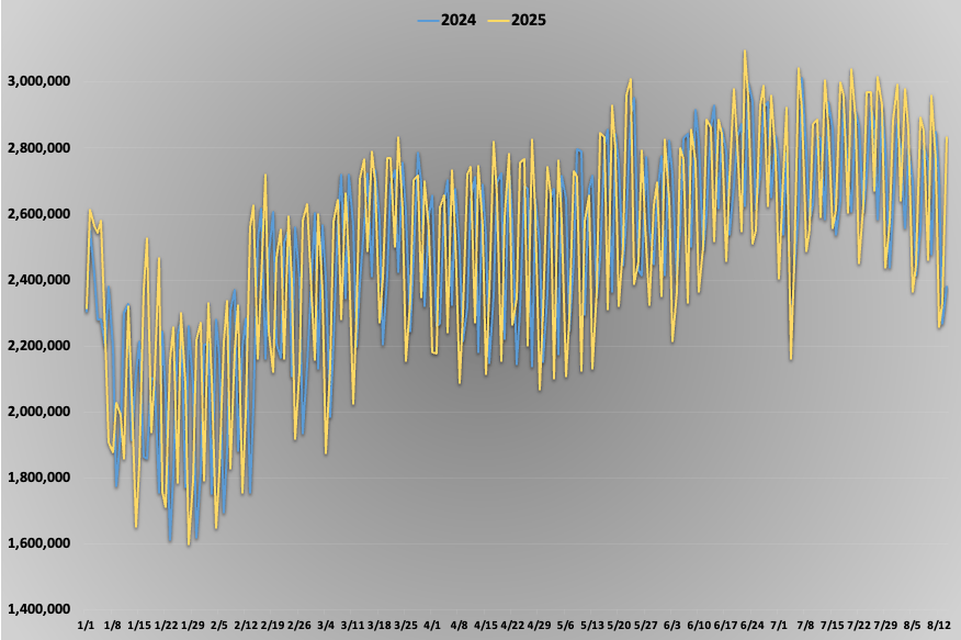 🇺🇸 Daily Passenger Counts at U.S. Airports, 2025 vs. 2024